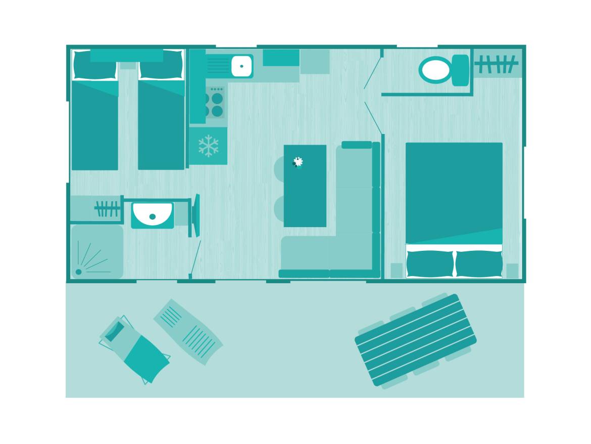 - 2 single beds (can be turned into a double bed) : 80x190 cm
